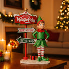 La statuetta con folletto e cartello stradale natalizio in resina è una decorazione natalizia vivace e dettagliata, progettata per aggiungere un tocco di allegria e fantasia alle festività.