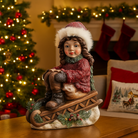 Statuetta decorativa "Carol su slitta" in ceramica con luci da 55 cm
