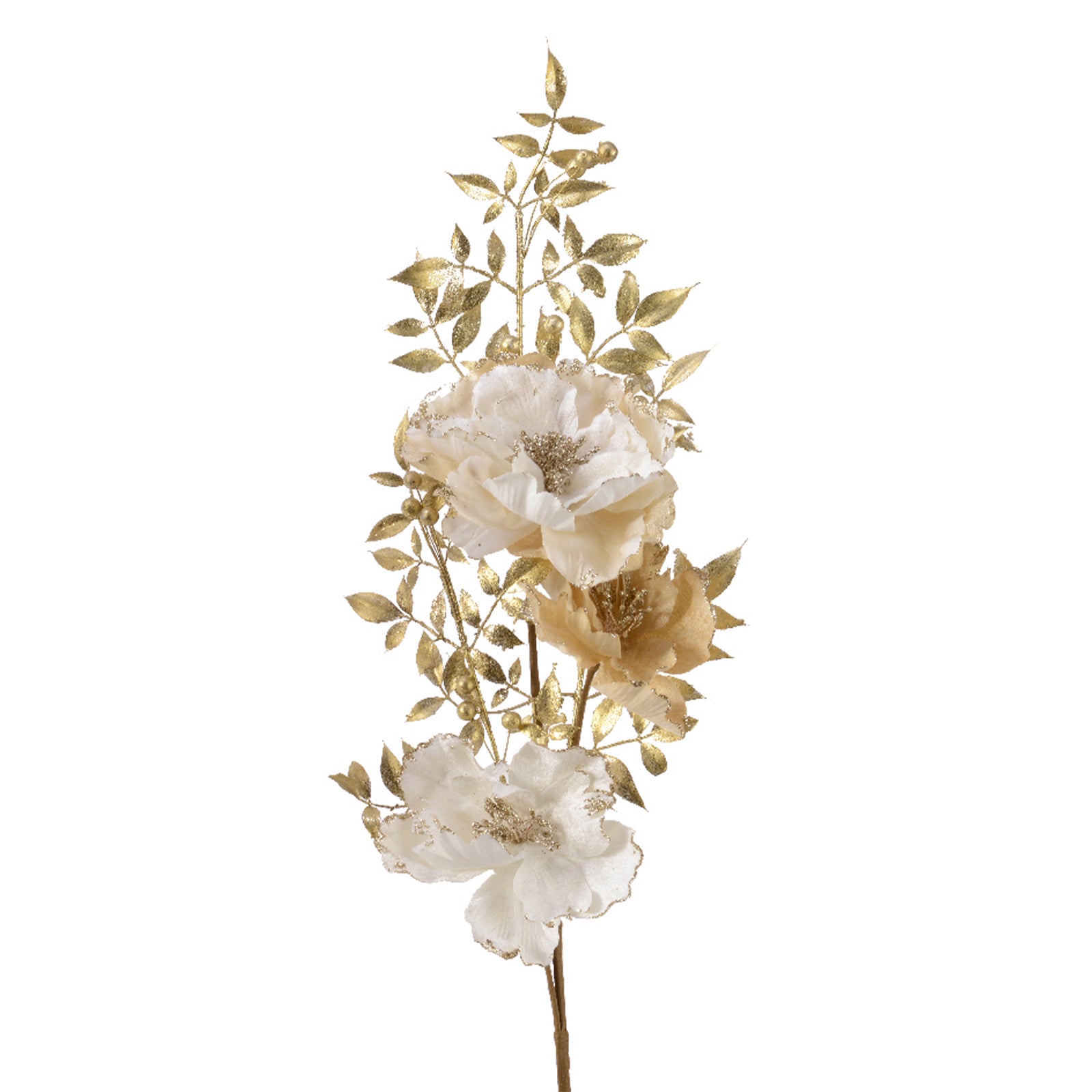 Ramo decorativo natalizio "Lineare Oro" con foglie da 97 cm