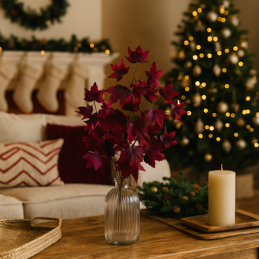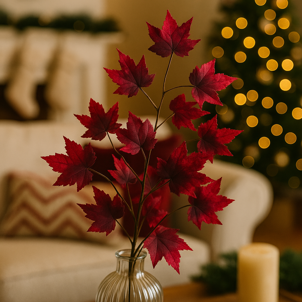 Ramo decorativo a forma di Acero effetto velluto, color rosso scuro da 100 cm
