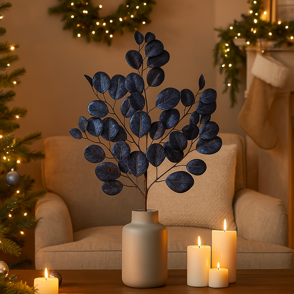 Ramo decorativo artificiale "Eucalipto" con glitter, decorazione da 60 cm