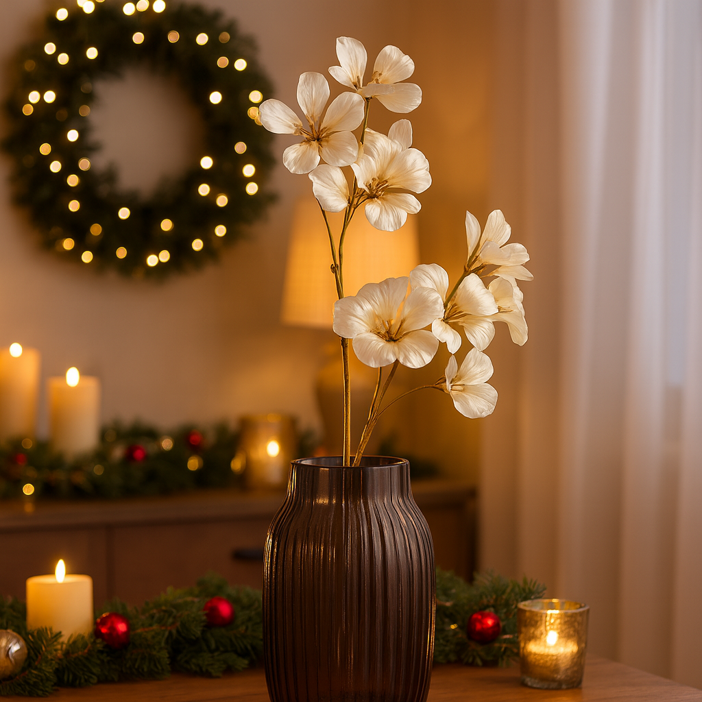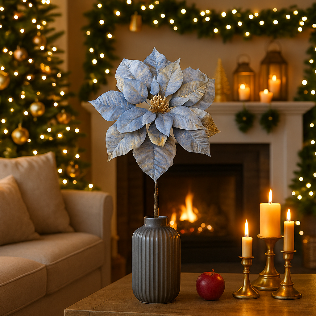 Poinsetta laminata colore bianco per decorazioni e composizioni h 32 cm