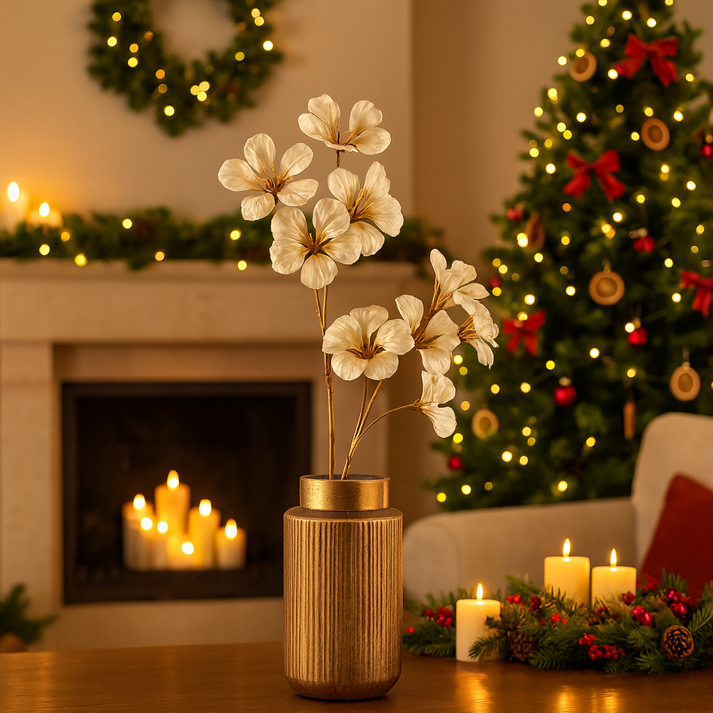 Ramo dorato con camelia per decorazione ambienti h 93 cm