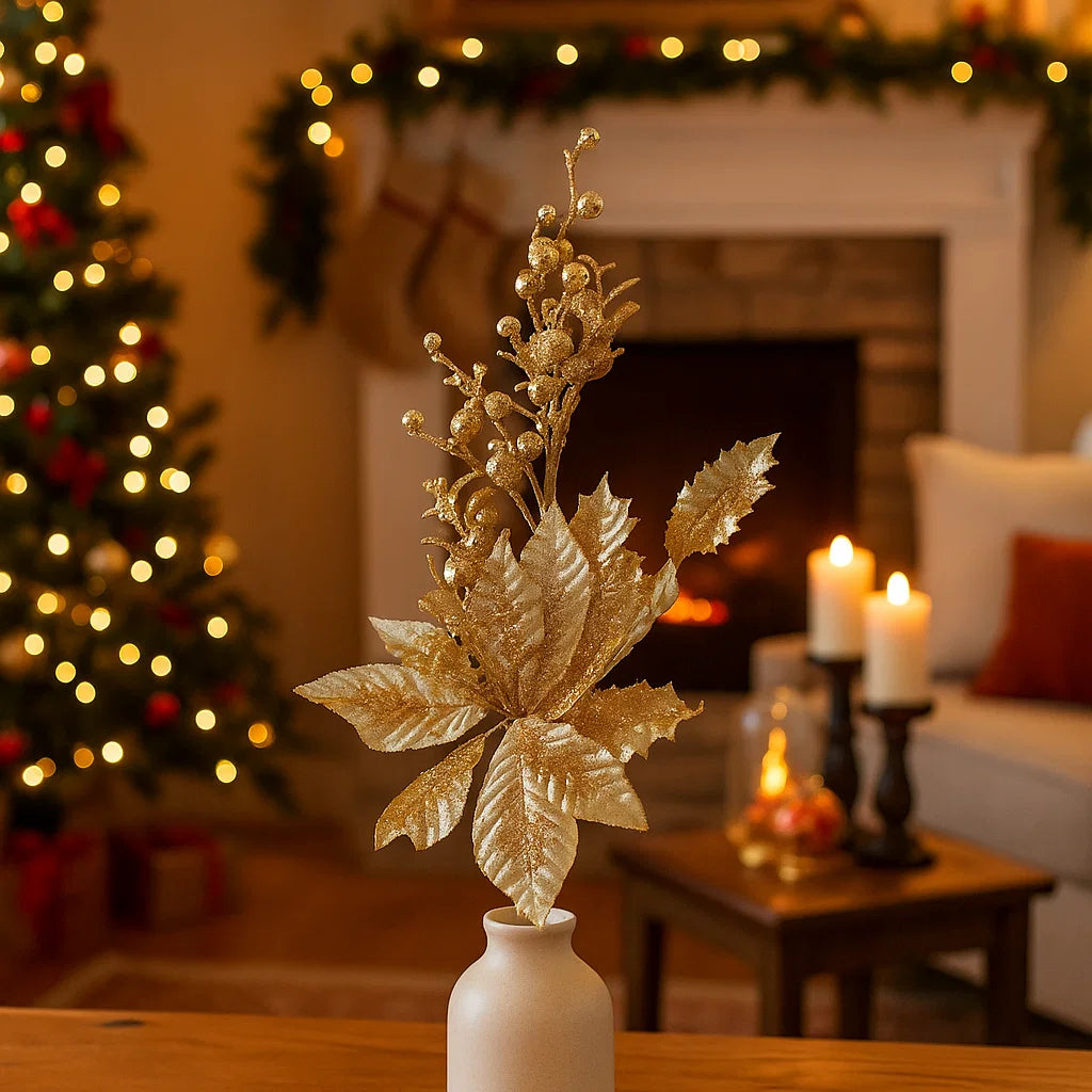 Ramo con fiori oro per decorazioni natalizie e composizioni, da 85 cm