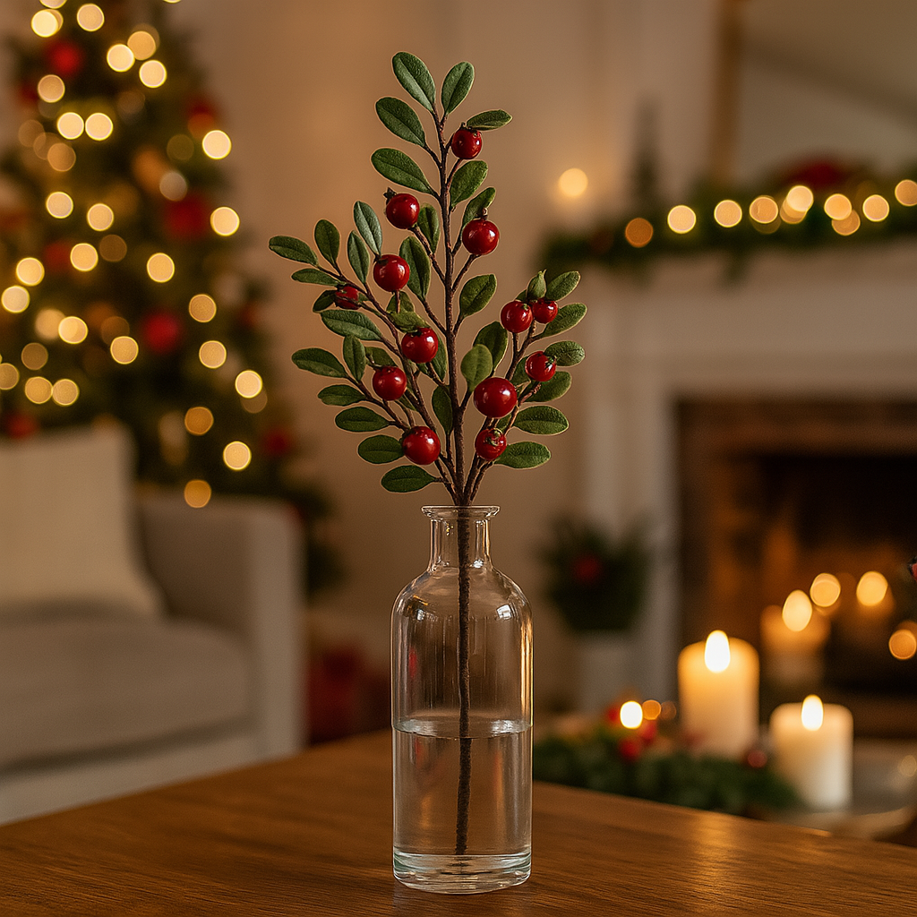 Bacche rosse per albero di natale per decorazione natalizia h 22,5 cm