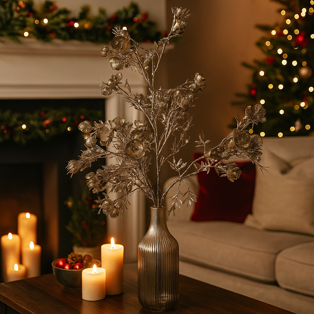 Ramo decorativo natalizio "Lineare Oro" con foglie da 97 cm