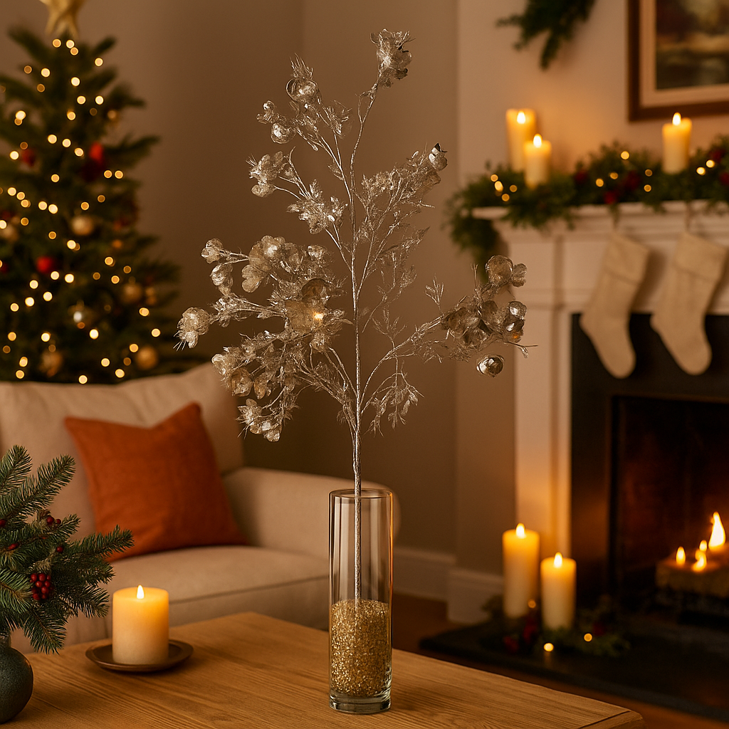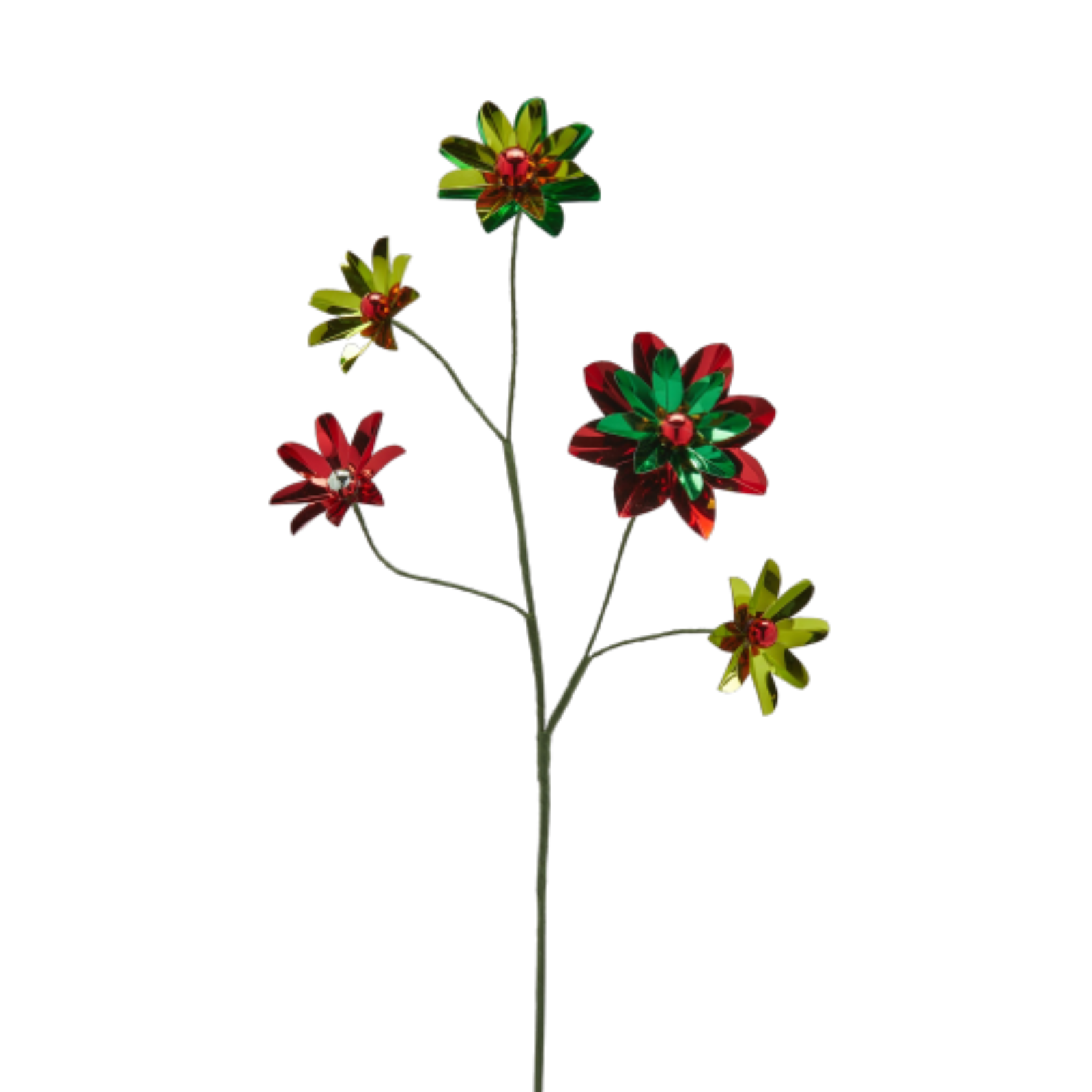 Stelo di fiore in paillettes retinato decorazione natalizia per interno, 40 cm