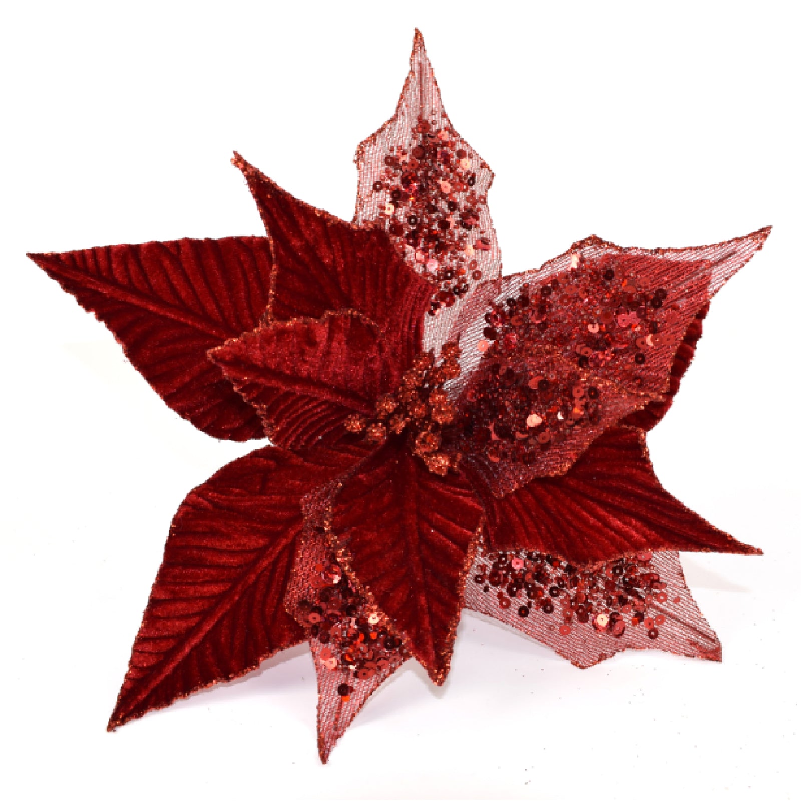Stella di Natale in velluto rosso con clip, diametro di 23 cm