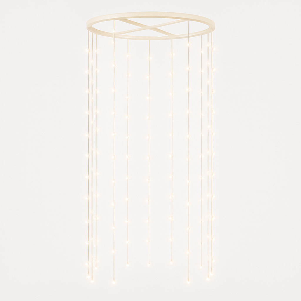 Ampi fasci di fili luminosi che partono da un unico punto e ricreano la forma del ramo di salice.