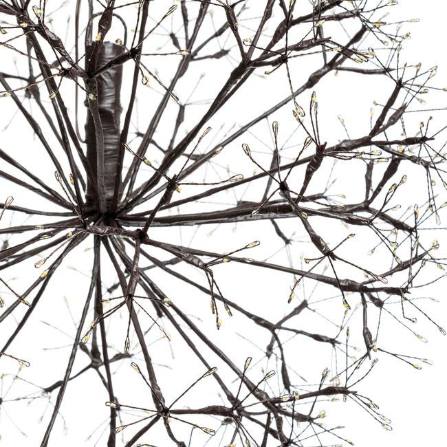 Questa sfera è composta da rami bianchi che si diramano da un'anima centrale rigida, terminando in ciuffi di microled che creano un effetto luminoso unico.