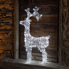 Decorazione natalizia luminosa che presenta la forma di una renna in piedi con effetto diamante per uso interno ed esterno.