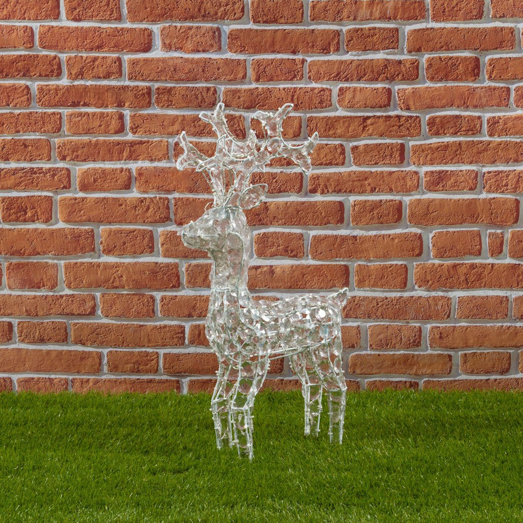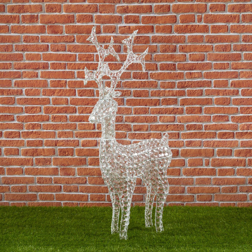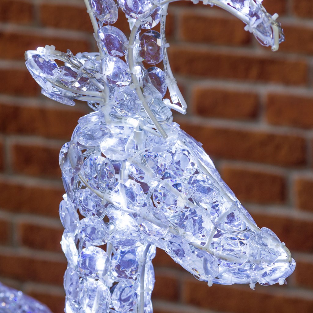 Renna con cristalli acrilici trasparenti illuminata da led a luce fissa.