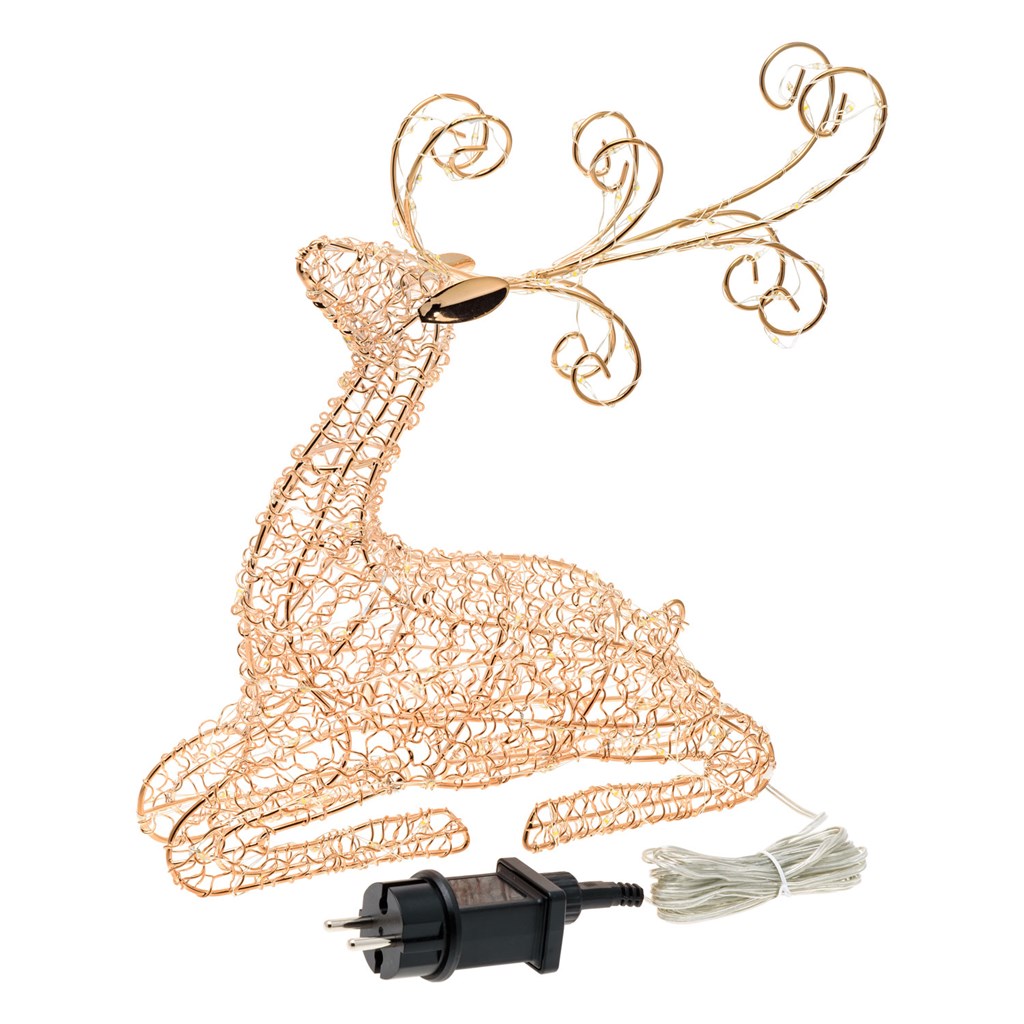 La renna fa parte della collezione di figure luminose realizzate in metallo lucido rame o champagne, tra cui puoi trovare pacchi regalo, stelle e alberi 3D.
