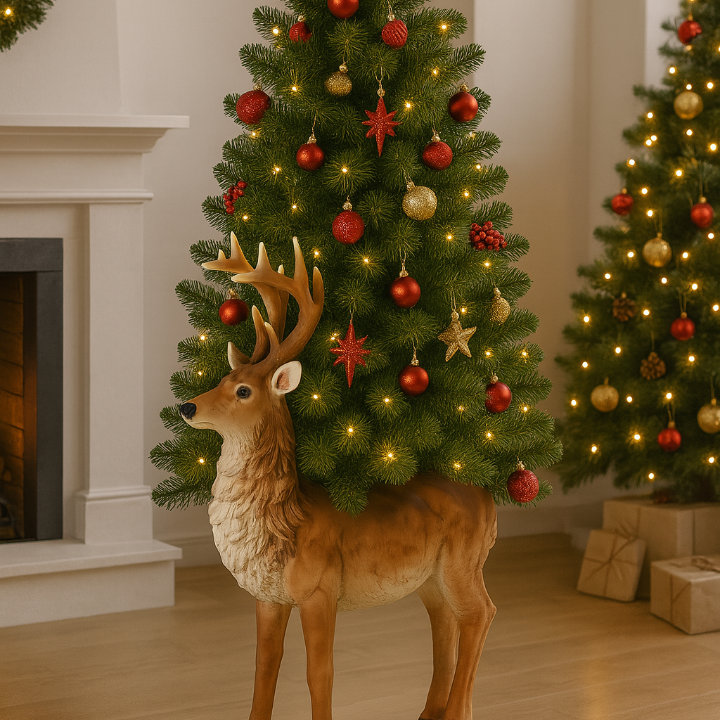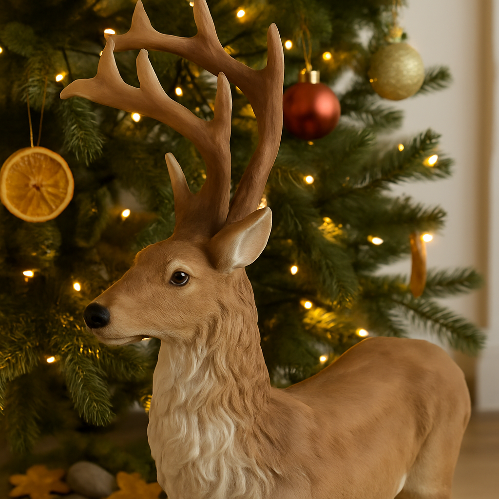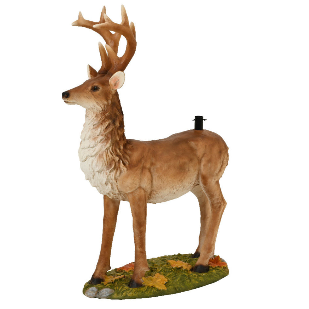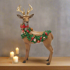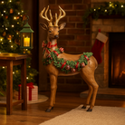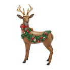 Statuetta decorativa renna con ghirlanda decorazione natalizia in resina da h 40 cm