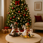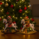 Orso su cavallo a dondolo in poliresina con luci a batteria design assortiti in scatola regalo