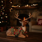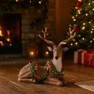 Renna con festone seduta, decorazione natalizia alta 25,5 cm