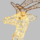 La renna ha una struttura in metallo, il telaio del corpo è bianco con i LED bianco caldo mentre le corna sono di colore marrone con i LED bianco extra caldo.