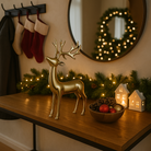 Questa raffinata renna dorata della linea “Glower” è una decorazione perfetta per aggiungere un tocco elegante e scintillante ai tuoi ambienti durante le feste.