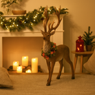 Renna in piedi , in resina con ghirlanda di frutta per decorazioni natalizie