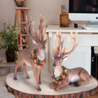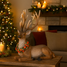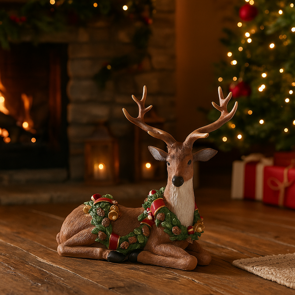 La renna in resina seduta con ghirlanda di frutta è una decorazione natalizia raffinata e senza tempo, ideale per esaltare l'atmosfera festiva e portare un tocco di charme naturale al tuo arredamento.