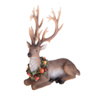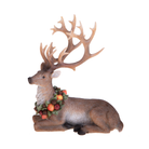Renna in resina seduta con ghirlanda di frutta h 23 cm per decorazioni natalizie