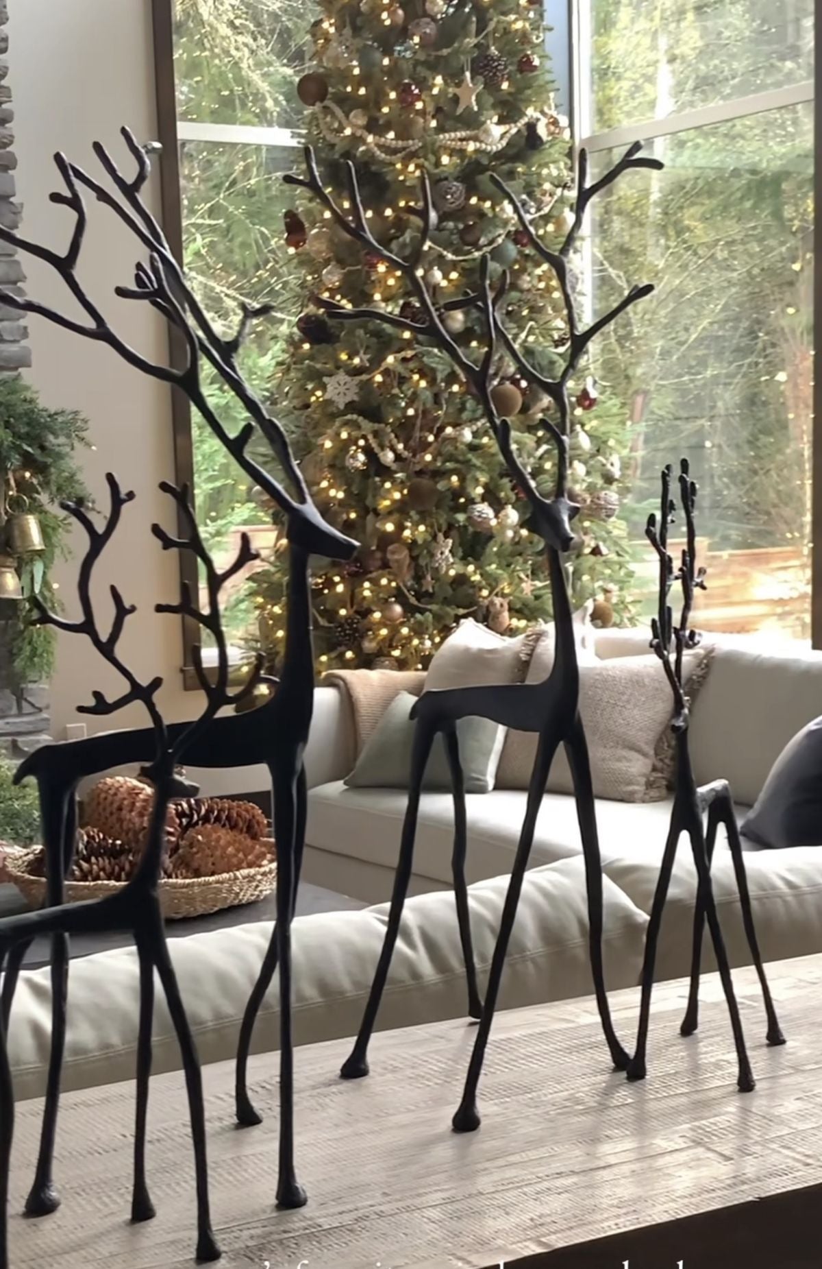 La renna decorativa "Kethy" stilizzata in alluminio è un affascinante e moderno pezzo di decorazione natalizia che aggiunge un tocco di eleganza contemporanea alla tua casa durante le festività.
