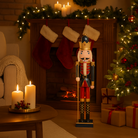 La statuetta decorativa "Soldatino schiaccianoci" in legno, alta 55 cm, è un'imponente e affascinante decorazione natalizia che cattura l'essenza delle festività con il suo design tradizionale e la lavorazione artigianale.