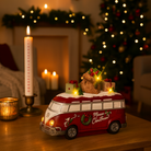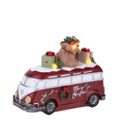 Bus rosso con regali e led in resina per decorazioni natalizie