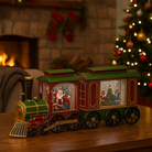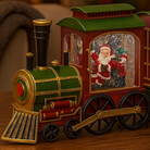Un trenino festoso che sfreccia lungo i binari della fantasia, portando a bordo regali scintillanti, lucine calde e una dolce melodia natalizia. I vagoni rosso rubino con dettagli verdi fanno da cornice a piccole scene innevate che si animano quando il convoglio si mette in movimento, trasformando ogni mensola o tavolino in un paesaggio invernale in miniatura.