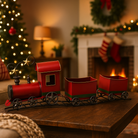 Questo affascinante trenino con vagoni in latta è una decorazione natalizia che unisce lo spirito tradizionale delle feste con un tocco di eleganza grazie alla sua combinazione di colori rosso, verde e oro.