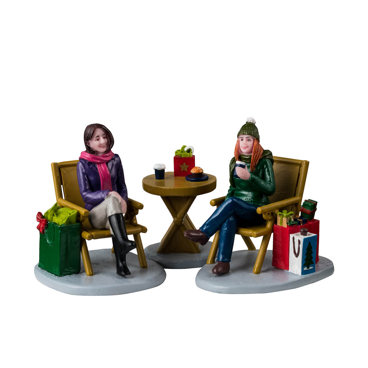 Personaggi per villaggio di Natale "Pausa di shopping natalizio" in resina