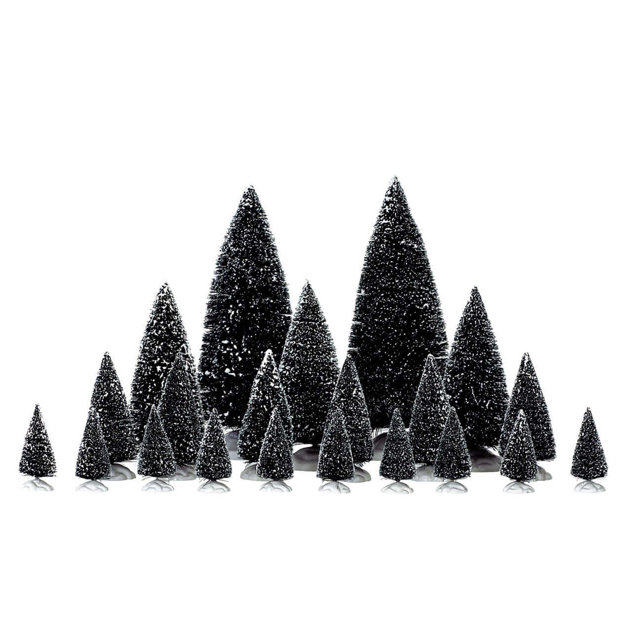 I pini arrivano in una confezione di 21 pezzi, sono innevati e presentano dimensioni diverse, rendendoli più semplici da usare nel villaggio.