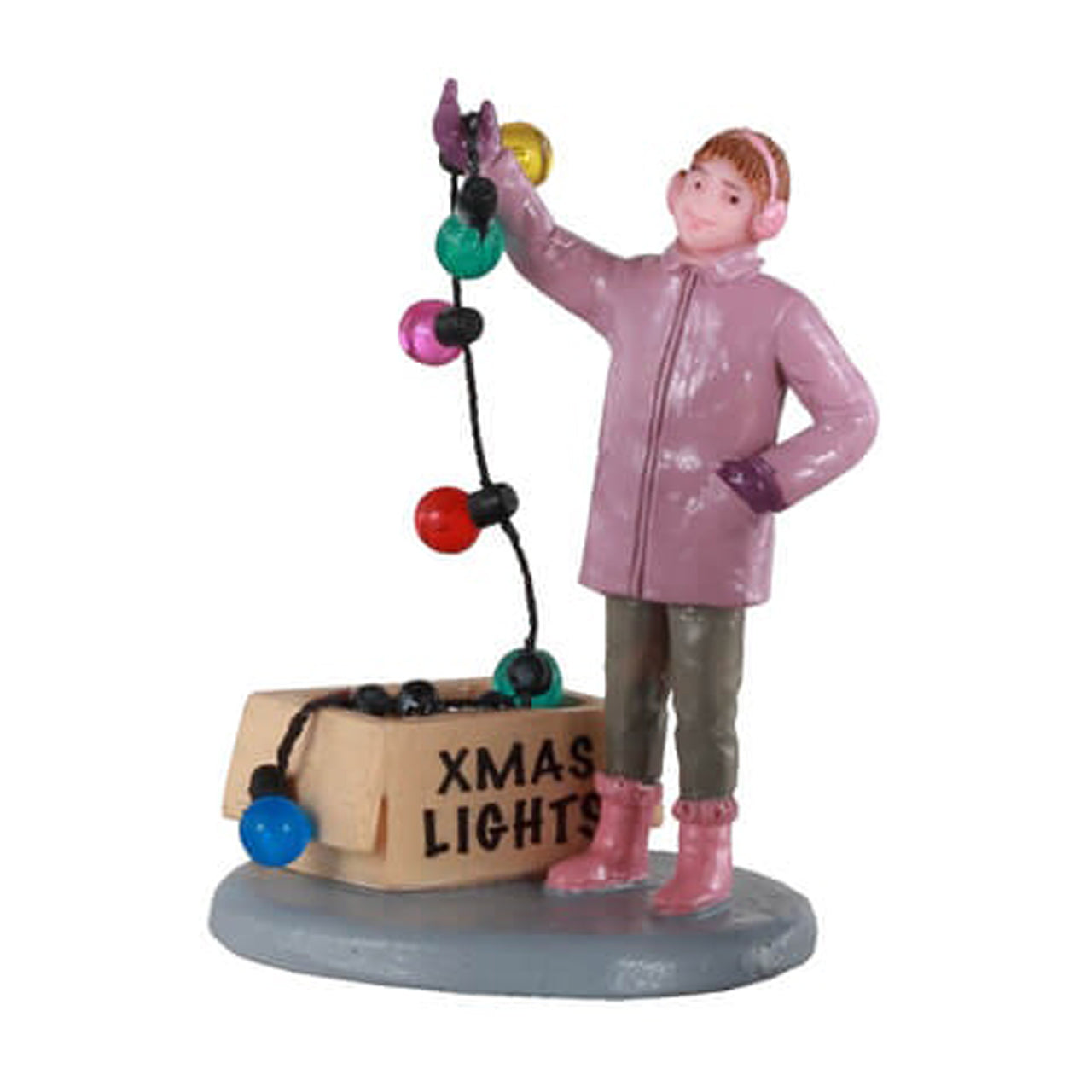 Statuette decorative in poliresina "Prepararsi al Natale in famiglia" per villaggio di Natale