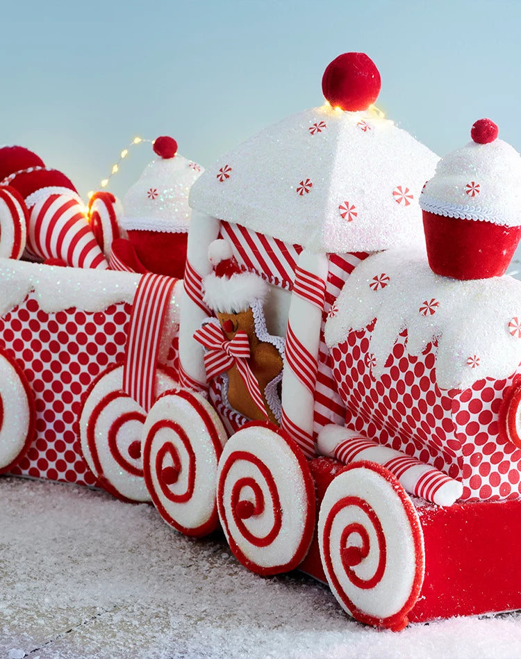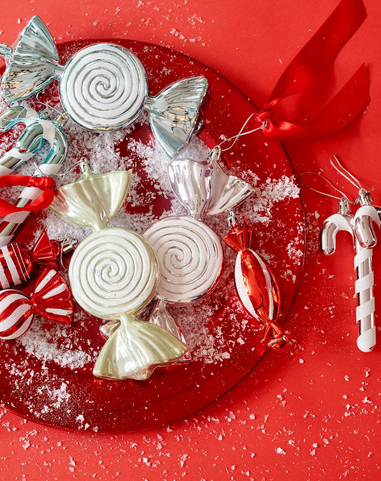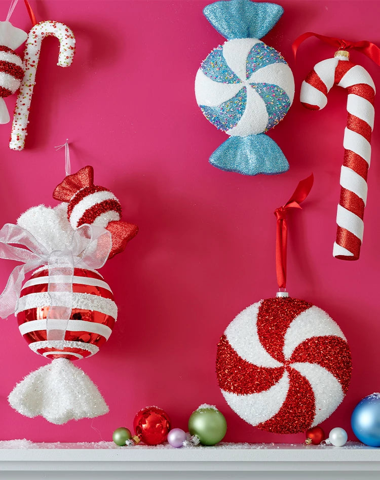 Le strisce rosse e bianche si avvolgono come caramelle giganti, evocando l'infanzia e la gioia del Natale.