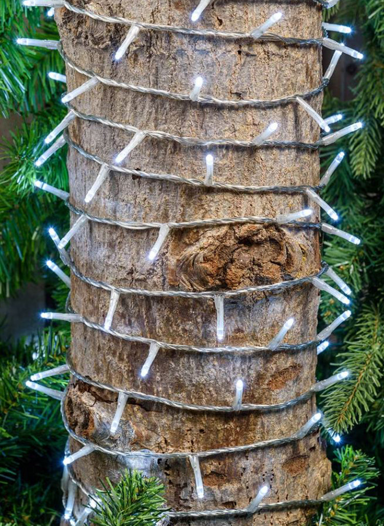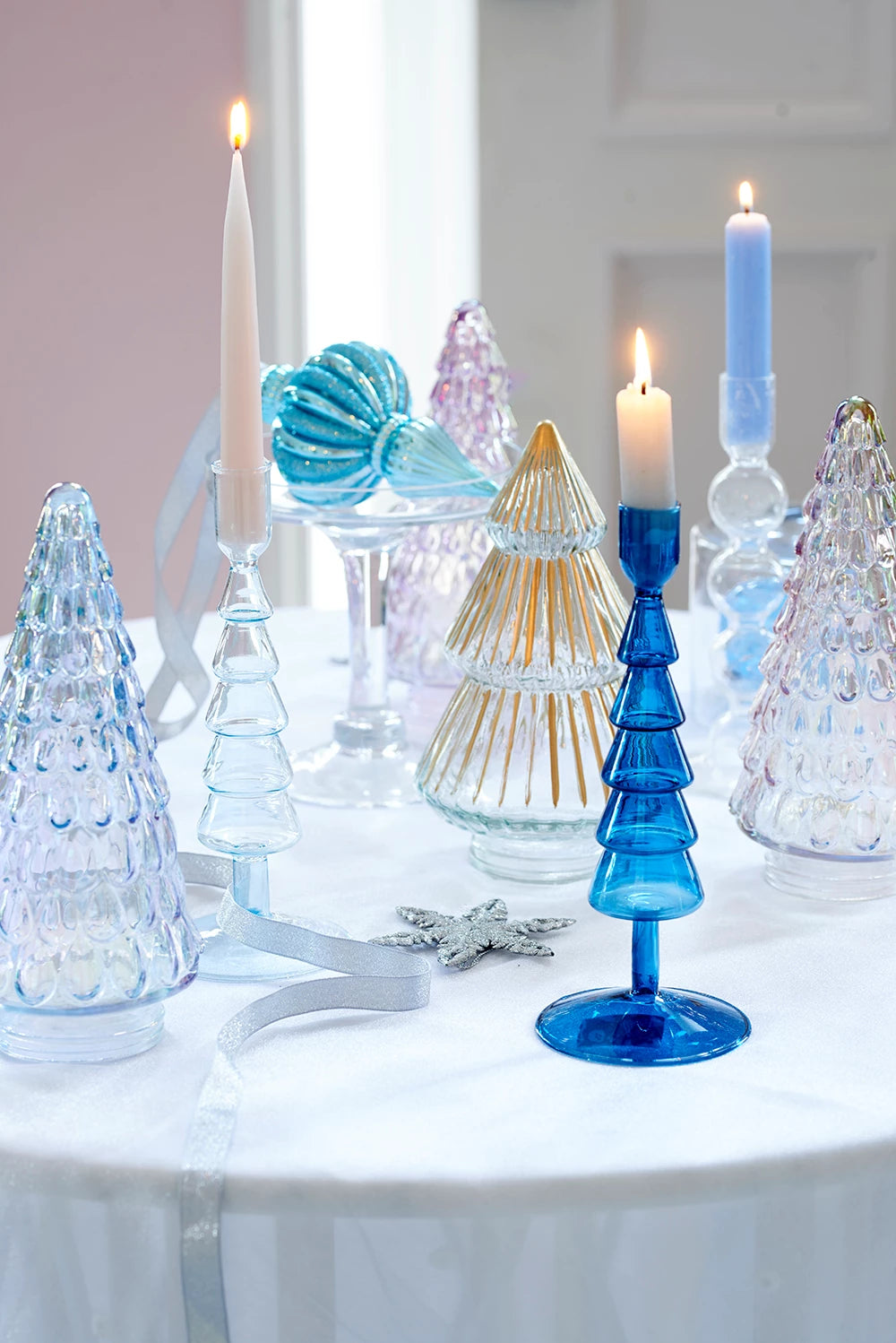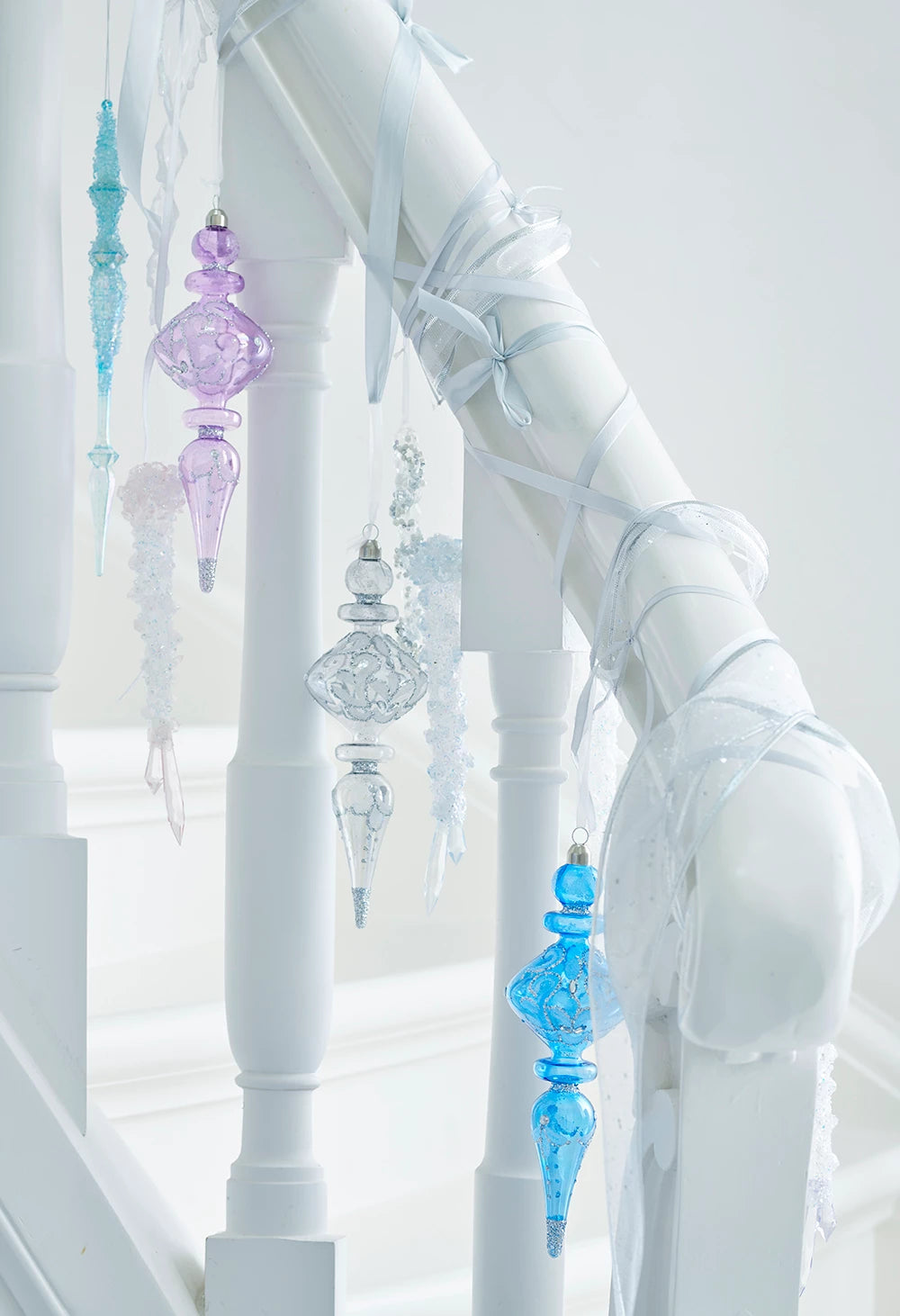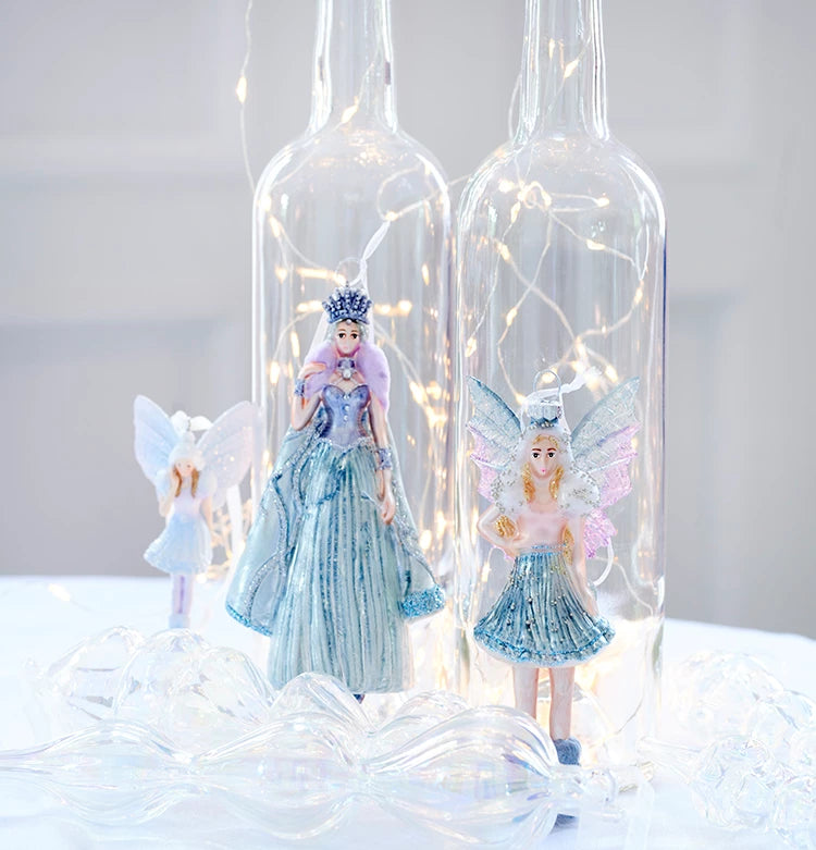 L’albero è meraviglioso e ricoperto di palline trasparenti con dettagli scintillanti e glaciali.