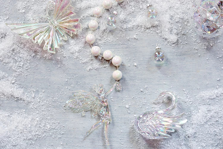 In questo tema magico, gli oggetti iridescenti brillano come cristalli scintillanti. Gli oggetti iridescenti brillano come piccoli gioielli sui rami dell' albero. La loro superficie cattura la luce e crea un bagliore speciale che riempie l'intera stanza.