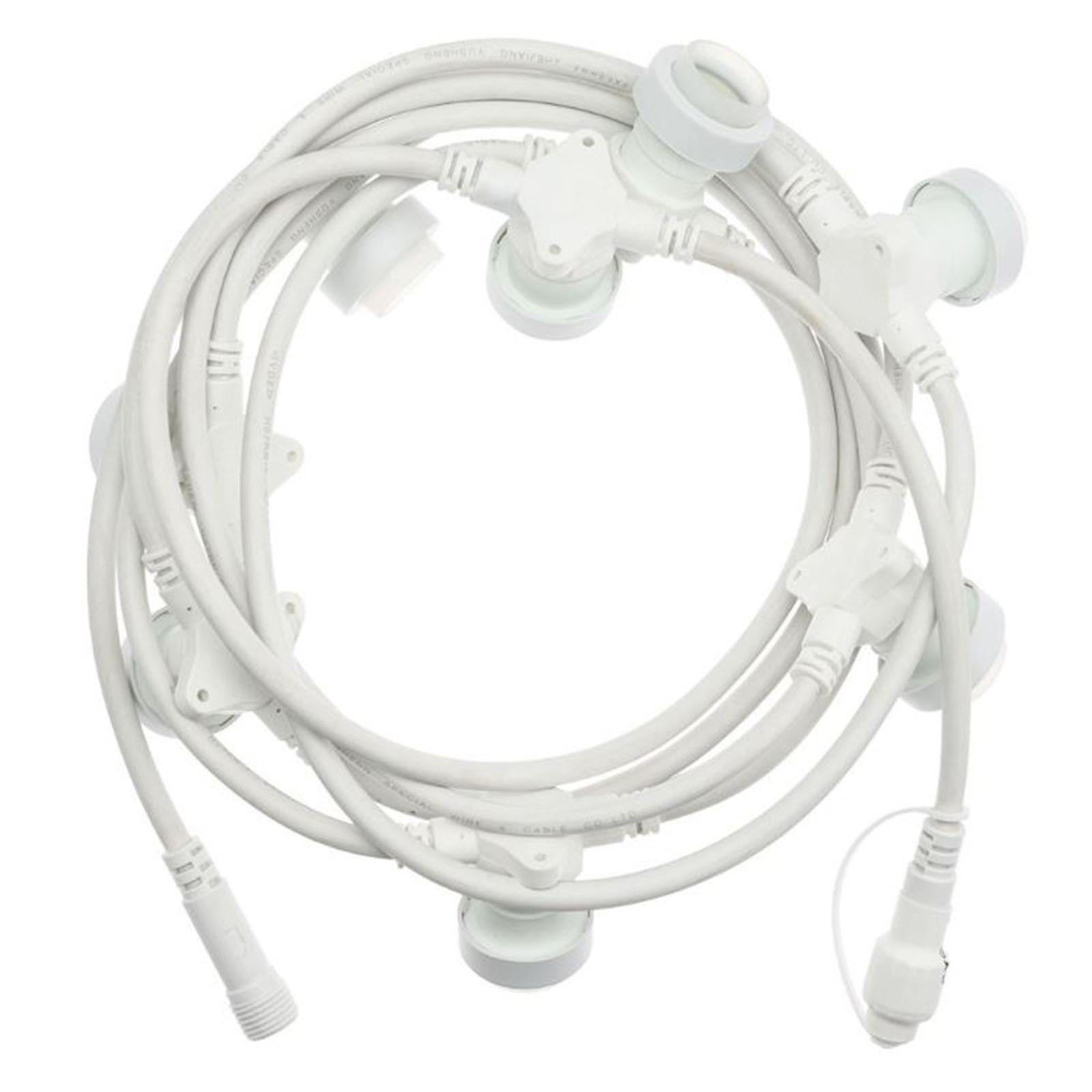 La catena ha robusti cavi in gomma di colore nero o bianco (sezione del cavo di 2 x 1,5 mm2) con 8 portalampade E27 resistenti all'acqua (IP44) distribuiti sui 5 metri di lunghezza.