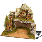 Scenario vuoto per presepe paesaggio con grotta e luci in legno e sughero 42 cm