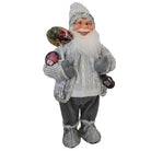 Babbo natale pupazzo con cappotto in lana grigio h 60 cm decorazione natalizia