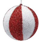 Pendaglio per albero di Natale "Palla Righe" da 15 cm, bianco e rosso