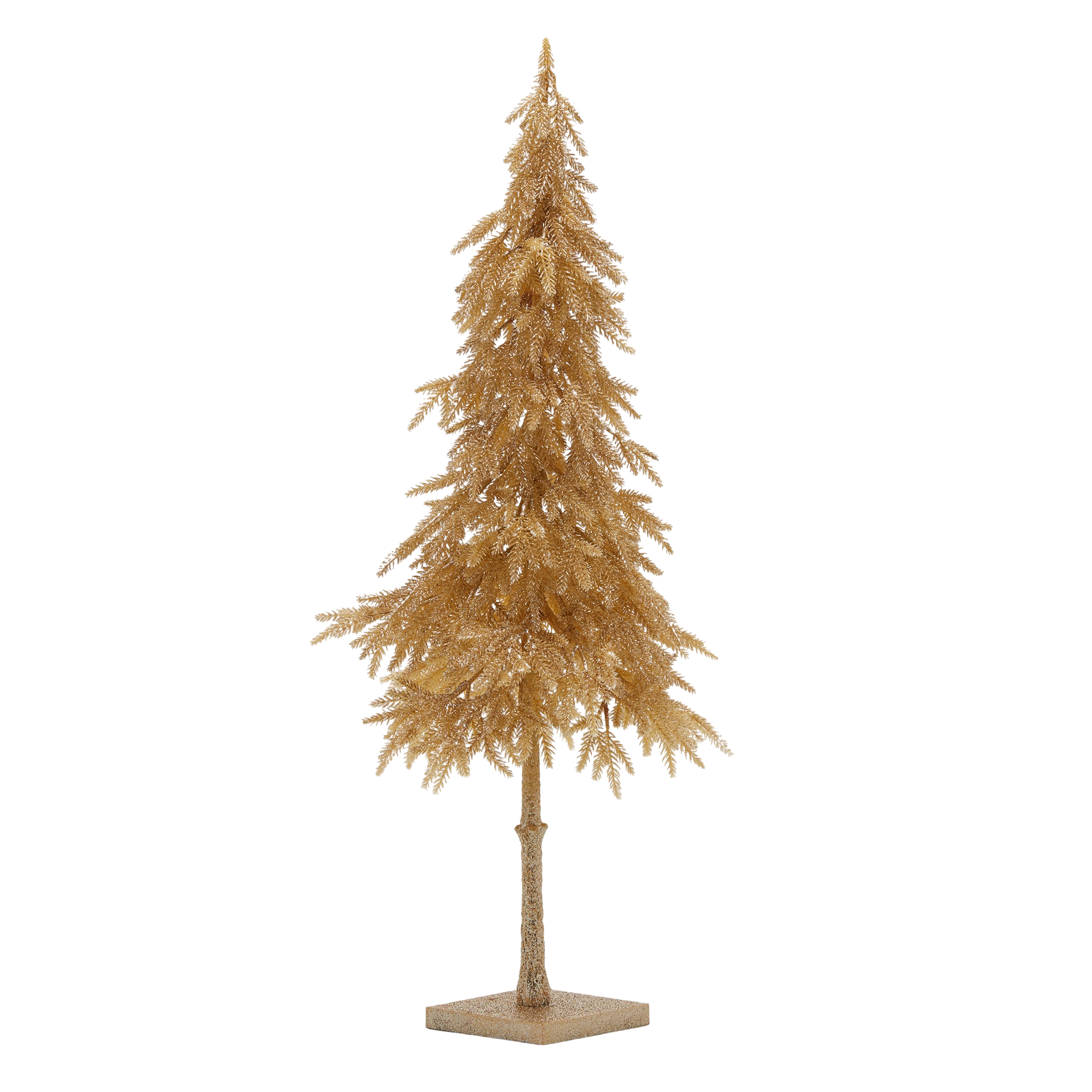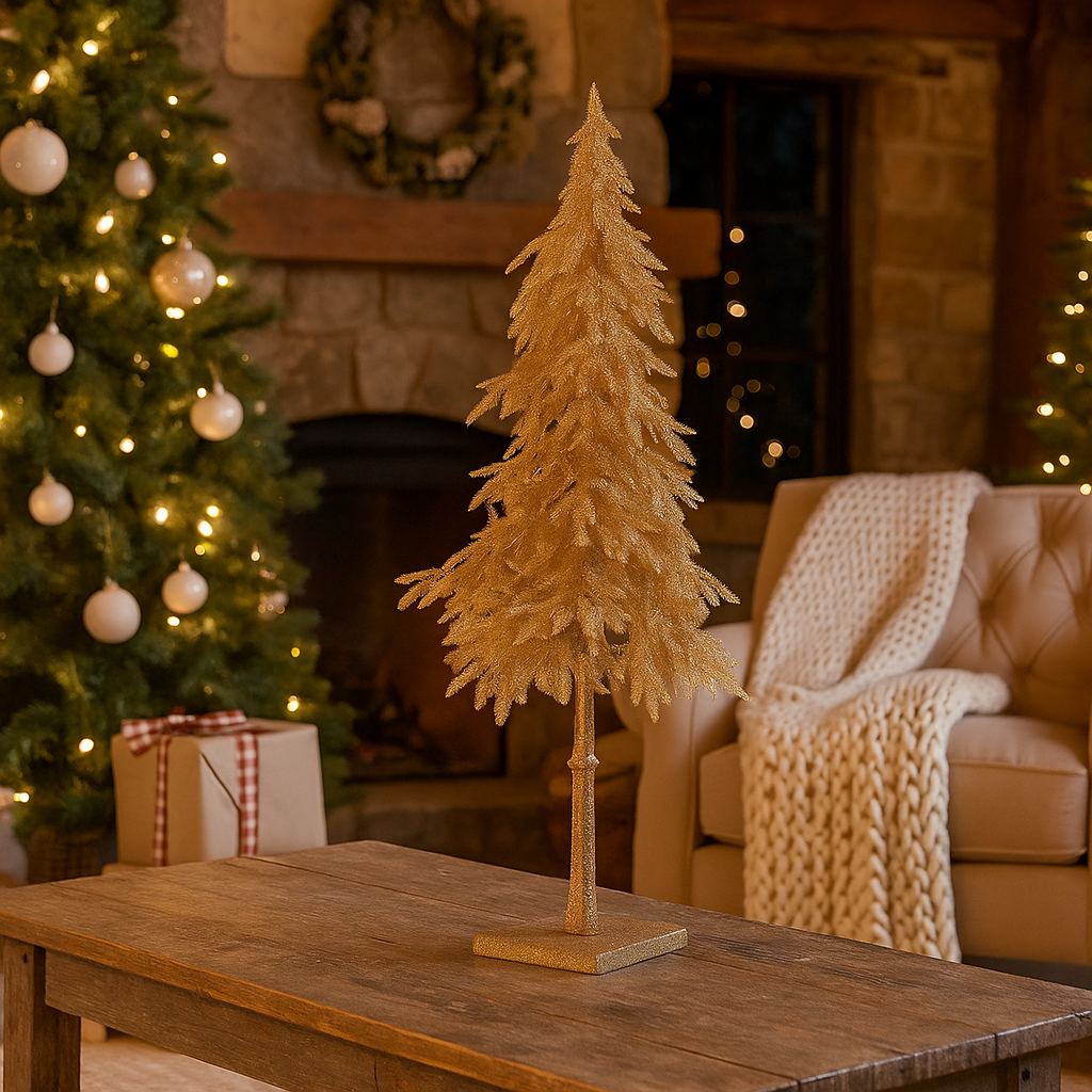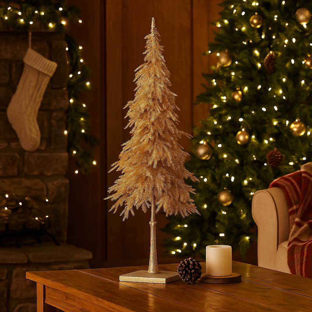 Alberello di Pino con base dorato con glitter per decorazioni natalizie