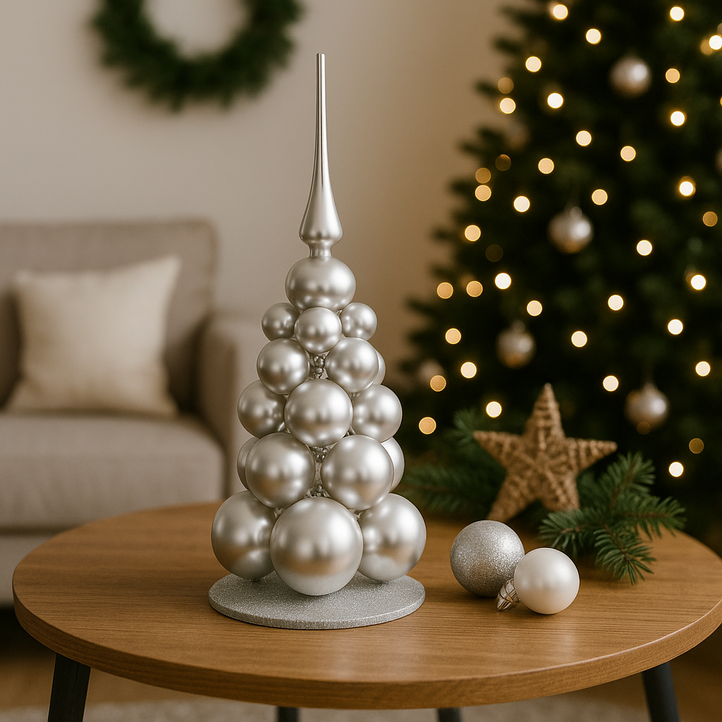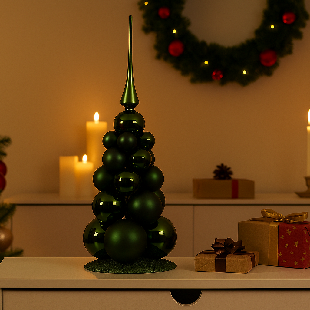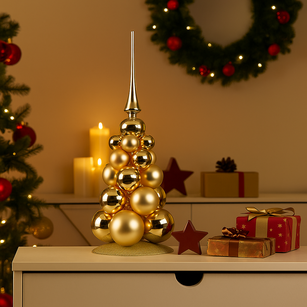 Design curato nei dettagli, con albero decorato e base elegante