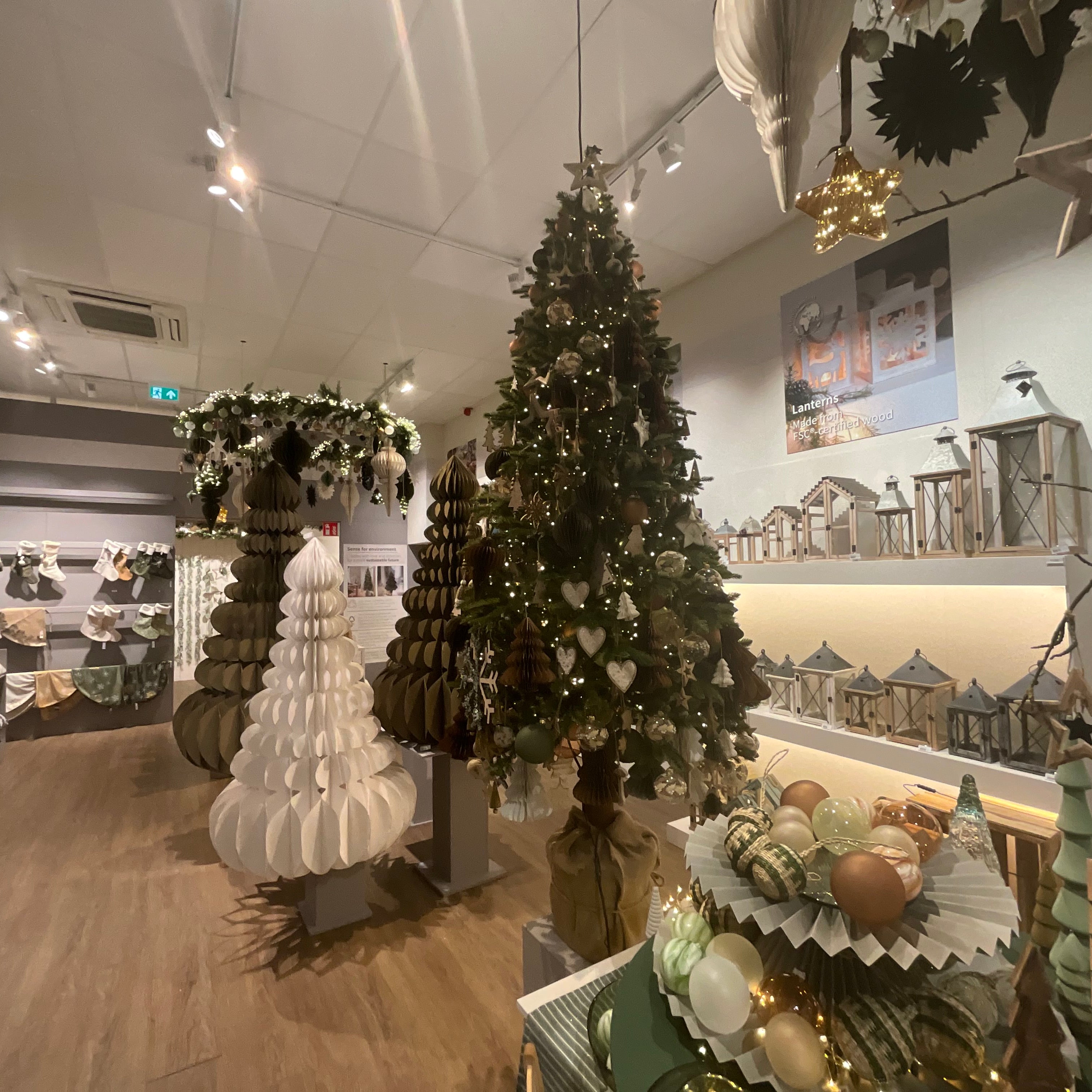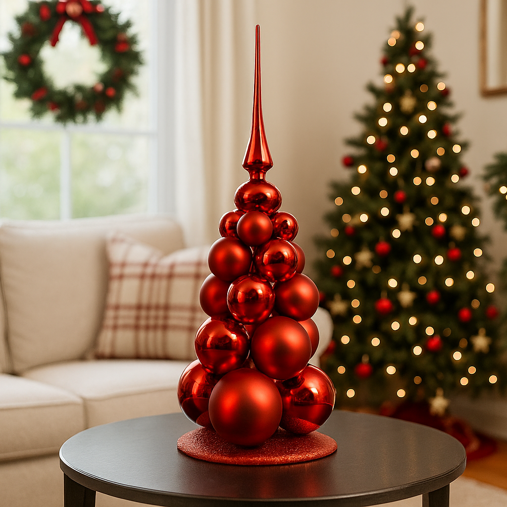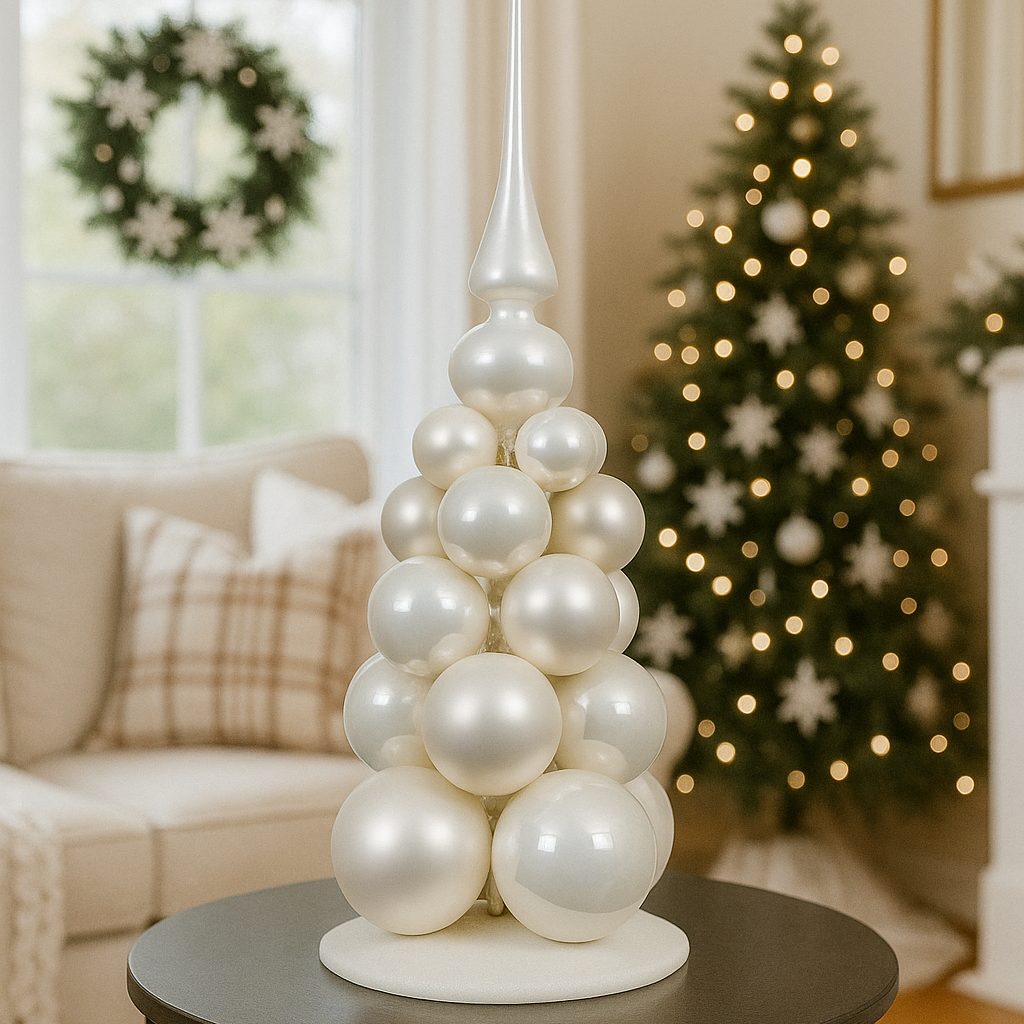 Design curato nei dettagli, con albero decorato e base elegante
