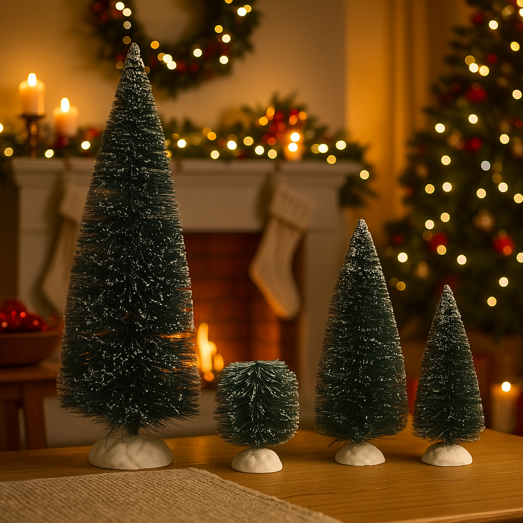 Gli alberi sono realizzati con materiali di alta qualità, garantendo una lunga durata e resistenza. Ogni albero è accuratamente modellato per assomigliare a un vero albero di Natale, con rami ben definiti e una forma conica. La loro finitura verde brillante dona un aspetto realistico e li rende perfetti per essere esposti in qualsiasi angolo del tuo villaggio di Natale o presepe.