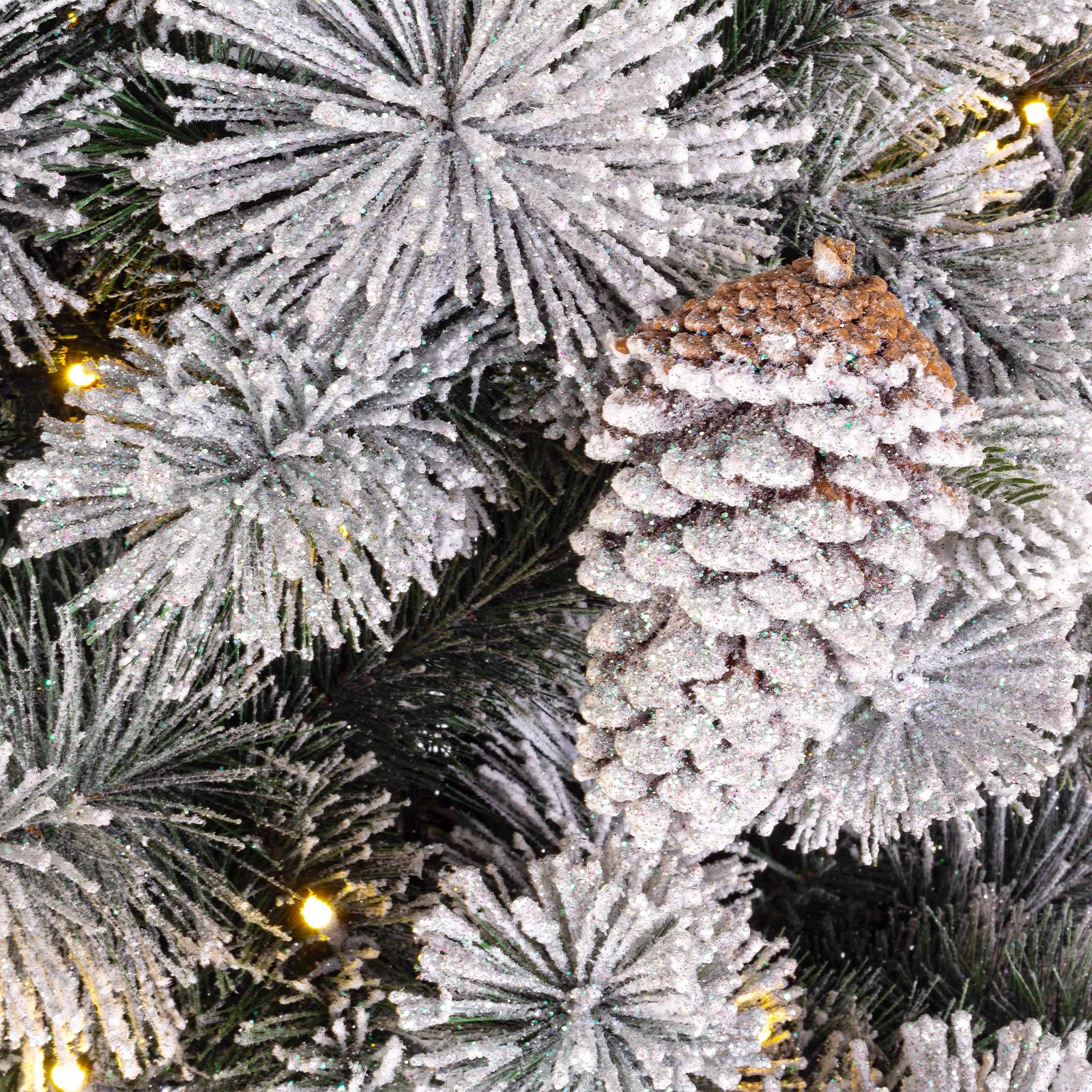 Albero di natale illuminato ed innevato "Garlenda" con glitter e luci led integrati