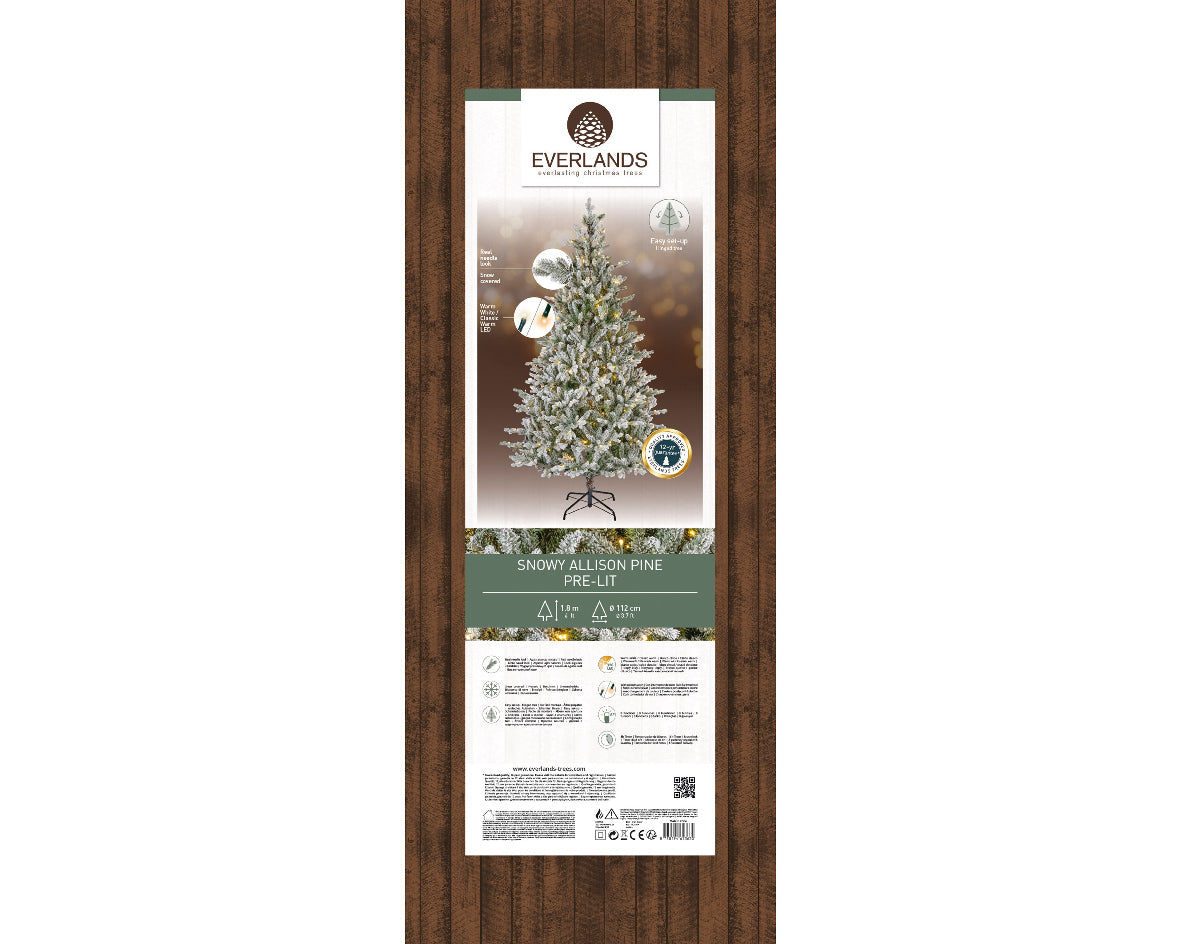 - Design: Albero "Allison innevato", progettato per un look naturale e rigoglioso con un tocco invernale.