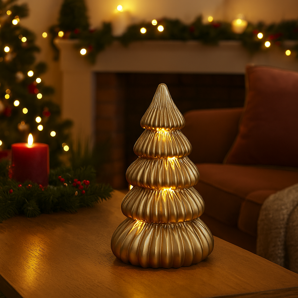 Con un'altezza di 41 cm, questo albero di Natale è ideale per essere collocato su tavoli, mensole, camini o altri punti strategici della casa, dove può fungere da centrotavola o da complemento decorativo.