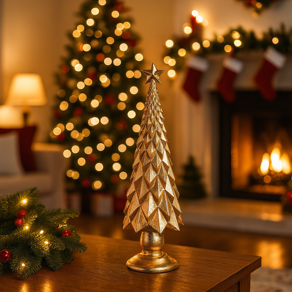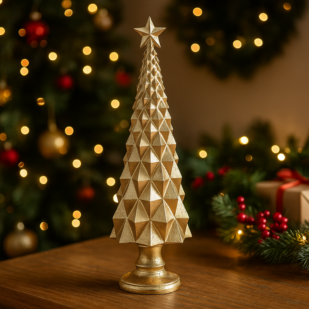 L'albero di Natale in resina con stella per decorazioni natalizie, alto 41 cm, è un raffinato oggetto decorativo pensato per arricchire l'atmosfera delle festività con un tocco di eleganza.