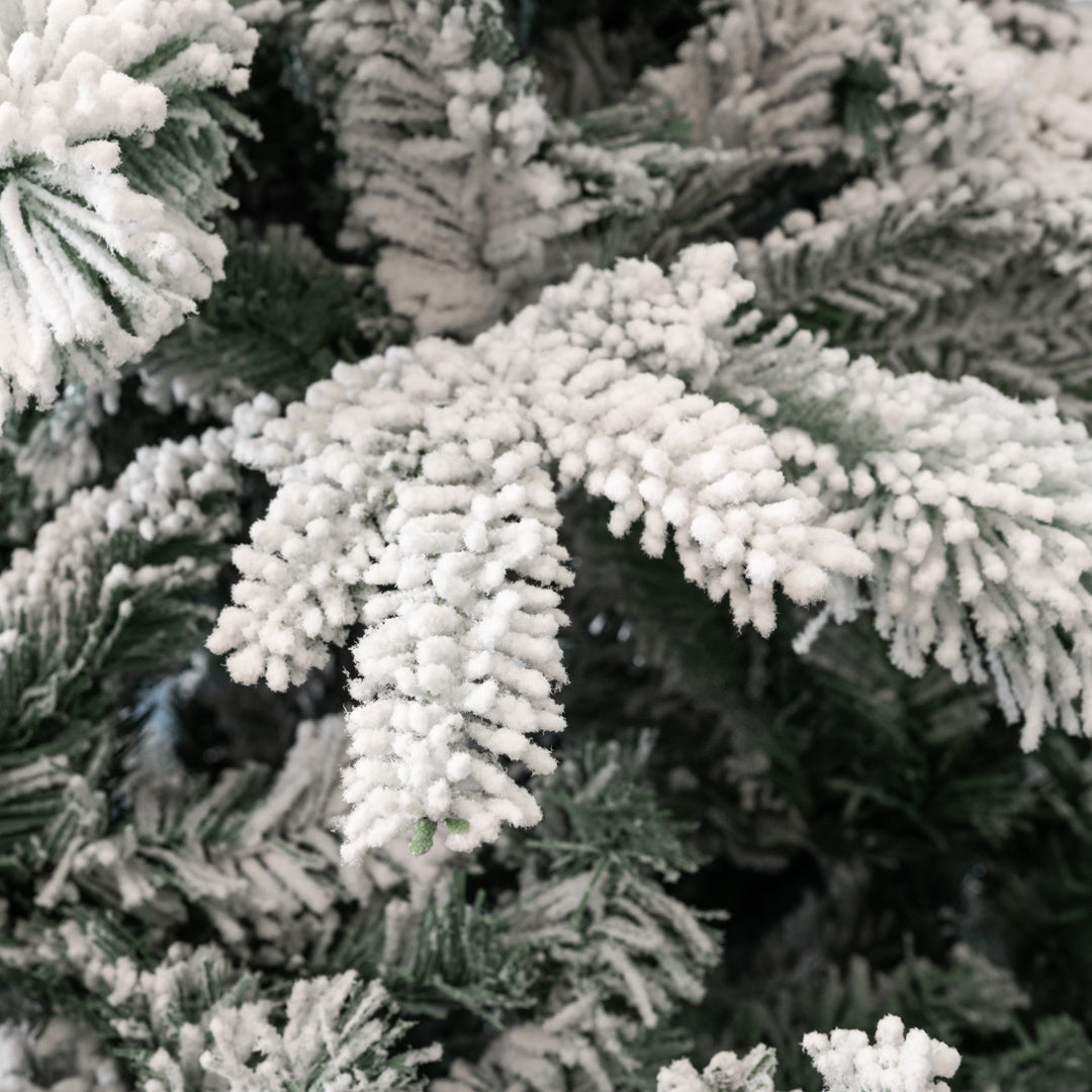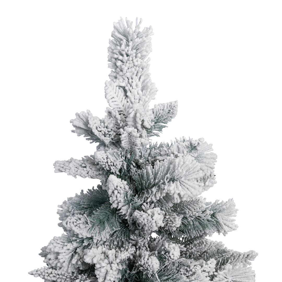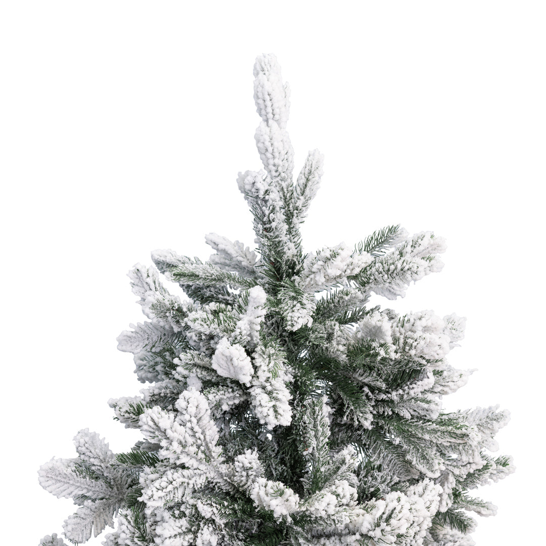 La finitura Flock, che simula la neve fresca, dona all'Albero di Natale "Garlenda" un tocco di autenticità e un'atmosfera invernale incantata.