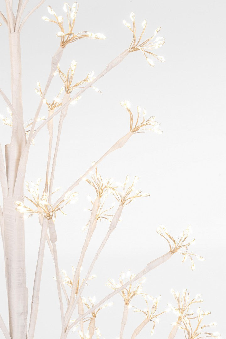L'albero "Flash" è dotato di luci LED a luce calda, che diffondono una luce dorata e avvolgente. Questa illuminazione crea un contrasto delicato con il bianco dell'albero, esaltando la bellezza dei rami e conferendo un senso di calore e accoglienza all'ambiente. La distribuzione uniforme delle luci sui rami garantisce un'illuminazione omogenea, perfetta per creare un'atmosfera festosa e serena.